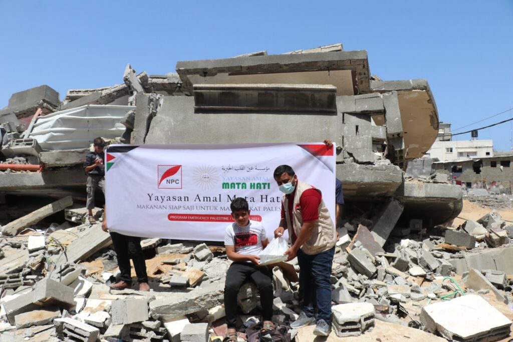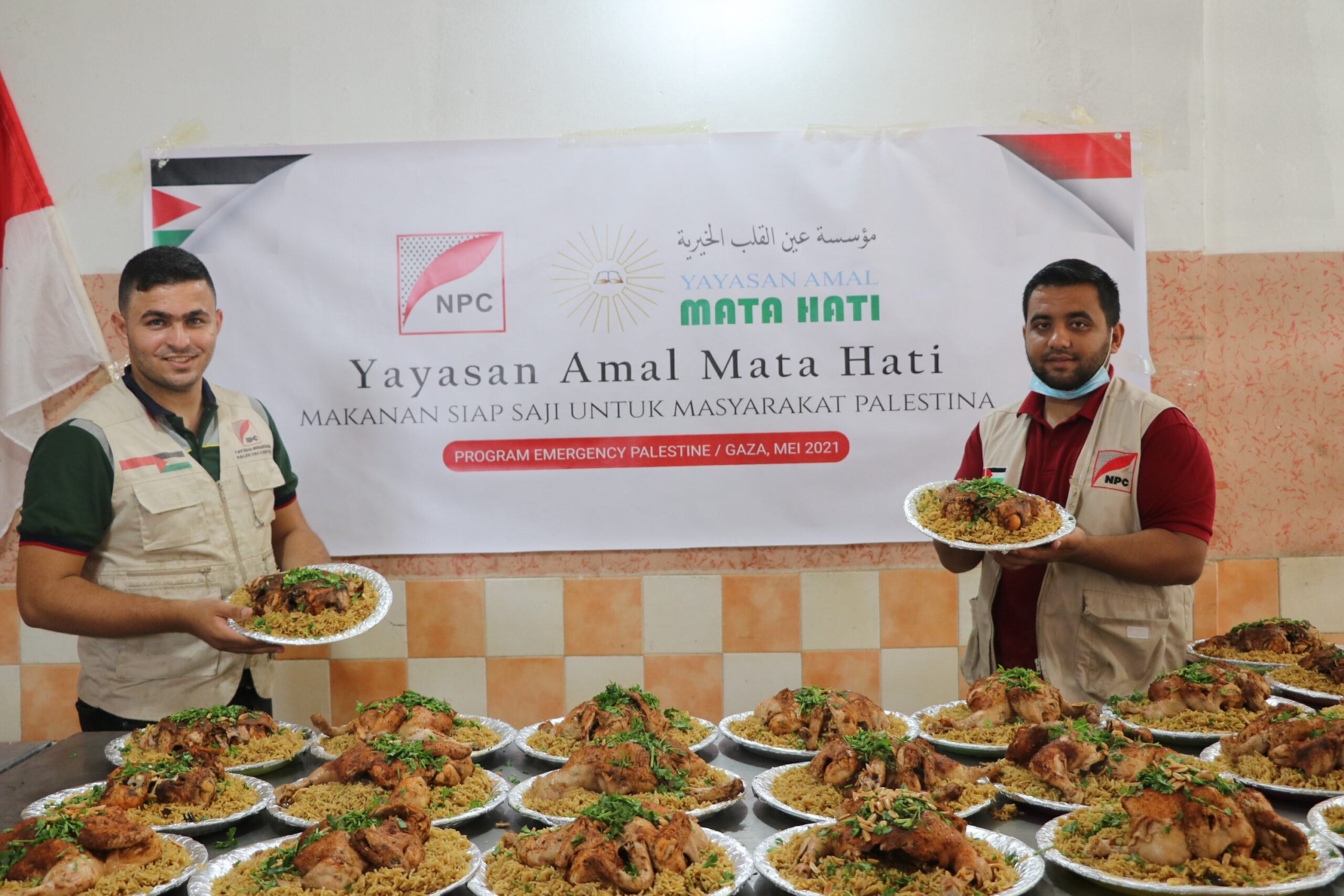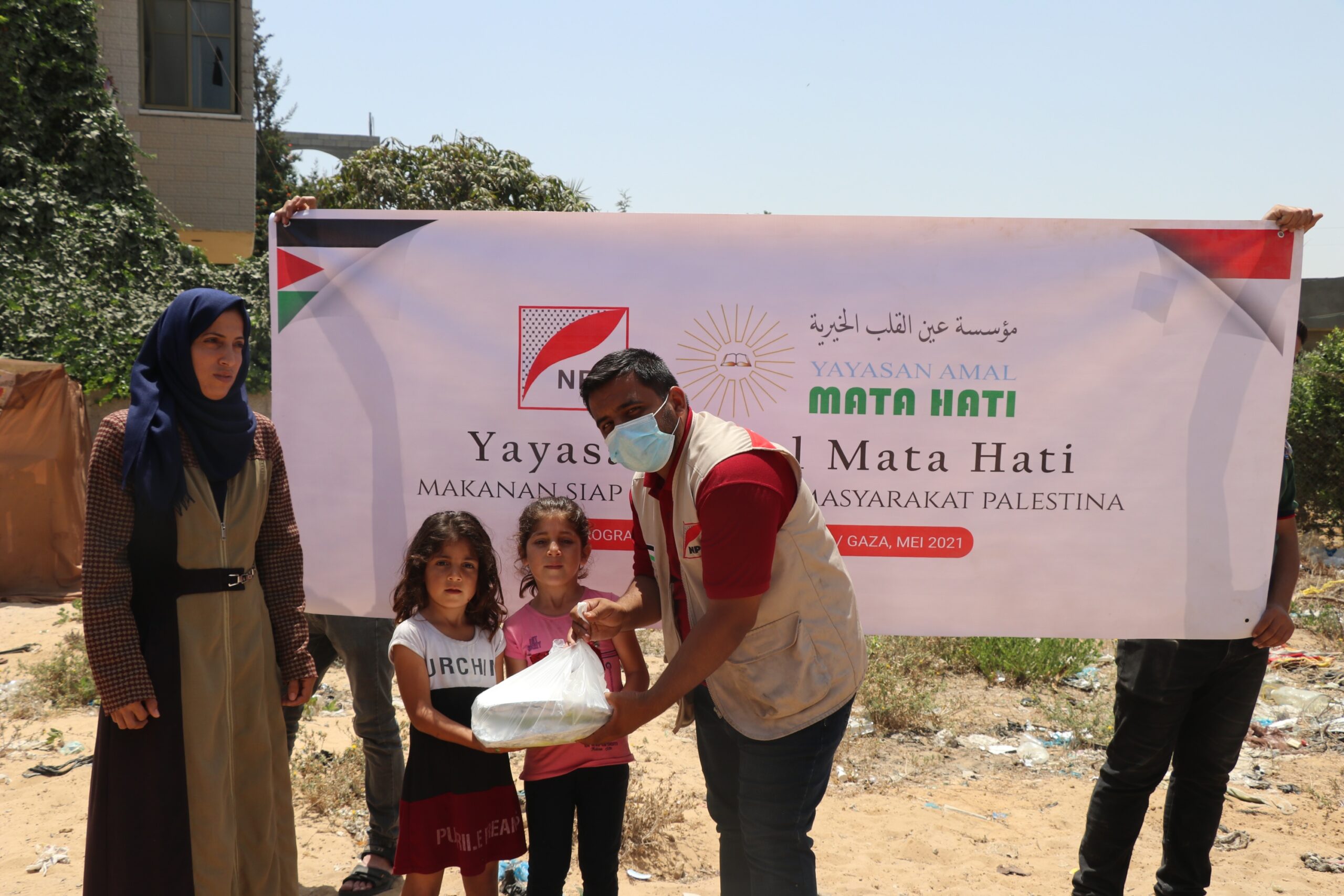 Sebagai bagian dari aksi nyata ini, Yayasan Amal Mata Hati menjalin kerja sama dengan NPC (Nusantara Palestina Center) dalam berbagai bentuk bantuan yang dibutuhkan oleh rakyat Palestina. Alhamdulillah, pada bulan Mei 2021, Allah memudahkan Yayasan untuk turut serta dalam penyediaan makanan siap saji bagi warga Palestina yang menjadi korban agresi di Jalur Gaza. Bantuan ini menjadi sebuah wujud kepedulian nyata, bahwa mereka tidak sendirian dalam menghadapi cobaan ini.